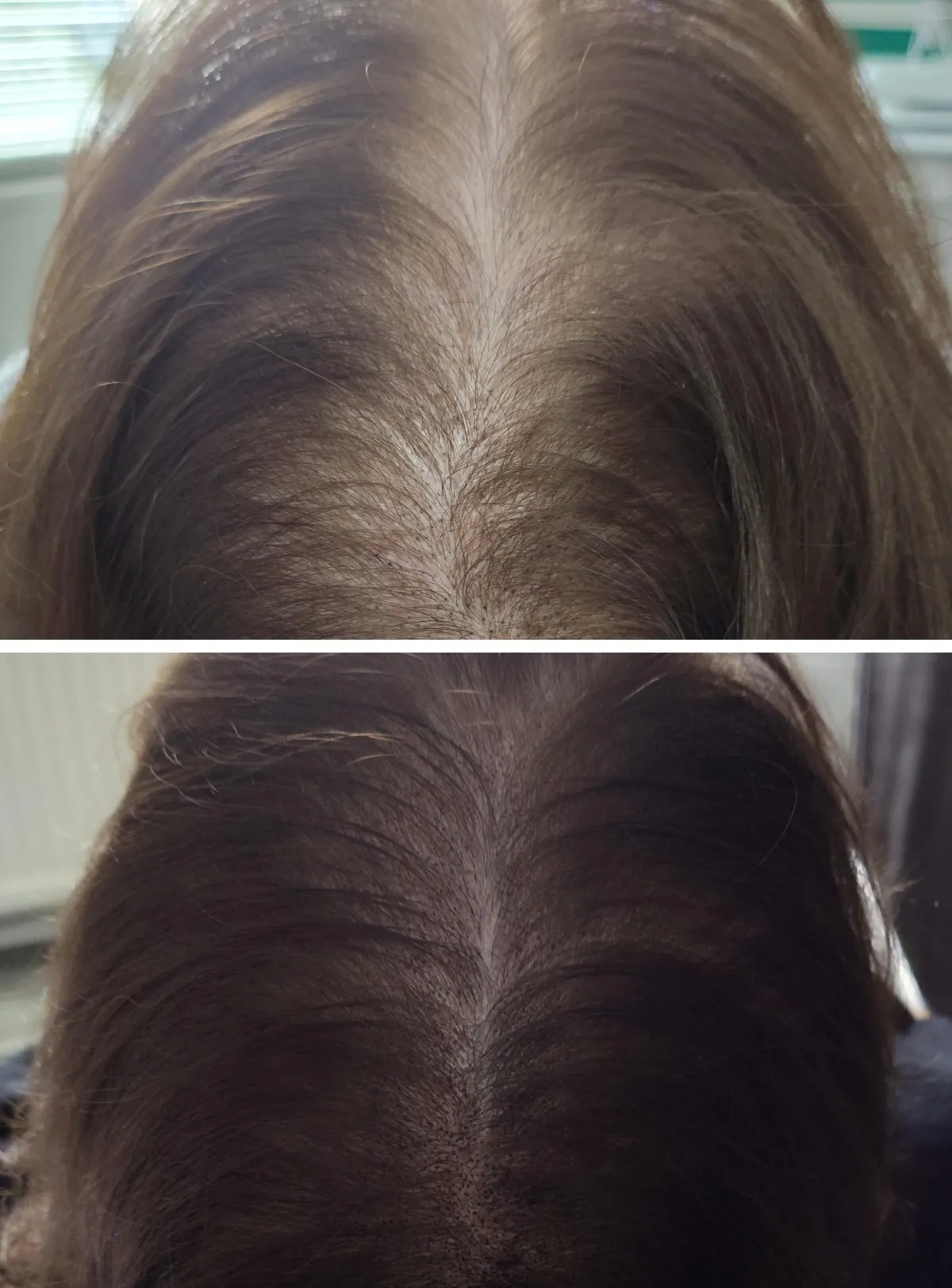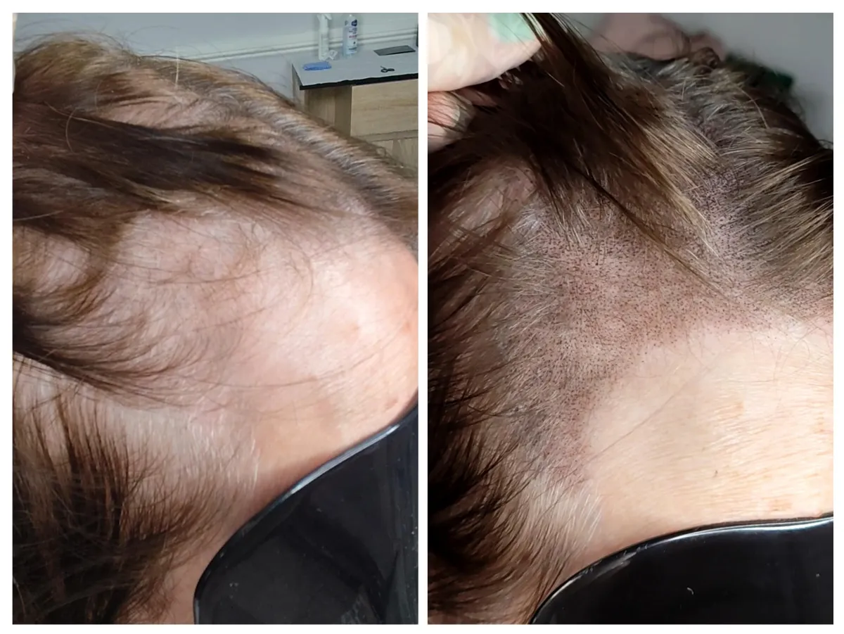 Using cosmetic tattooing techniques, SMP replicates the appearance of tiny hair follicles on the scalp, creating the illusion of fuller, denser hair. It’s tailored to match your natural hair colour and skin tone, making it an ideal choice for women experiencing diffuse thinning, widening parts, or visible scalp areas.